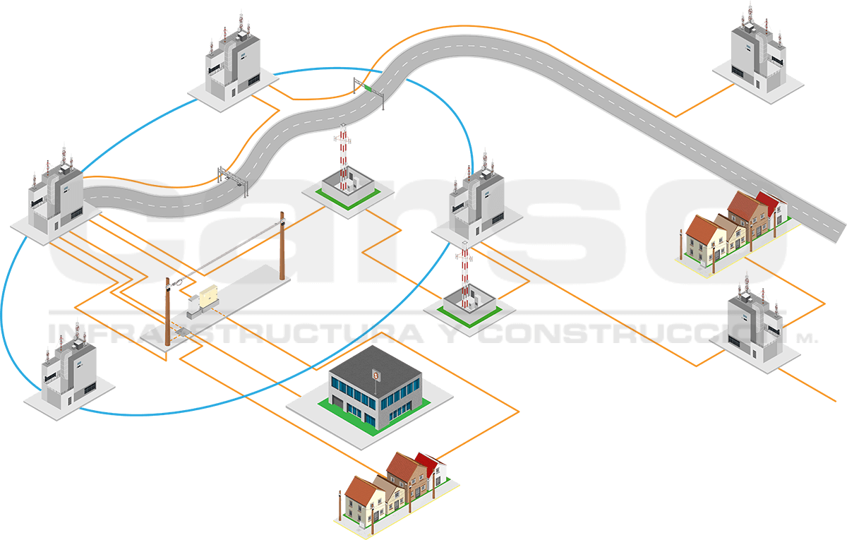 Principal fiber optics networks to link nodes in order to serve commercial and residential users.