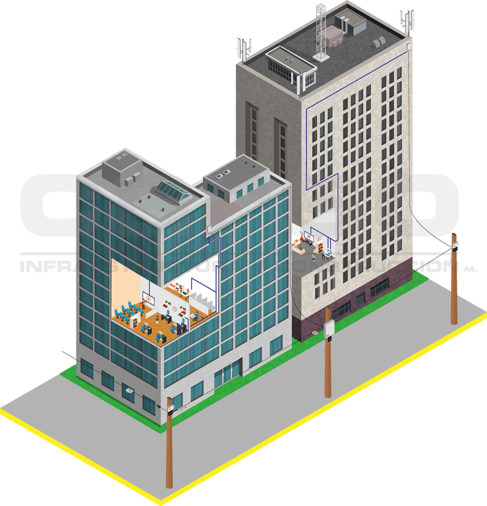 We build hybrid fiber optics, and coaxial cable (HFC) networks for wide band with voice, data and video services. The HFC  topology consists of: